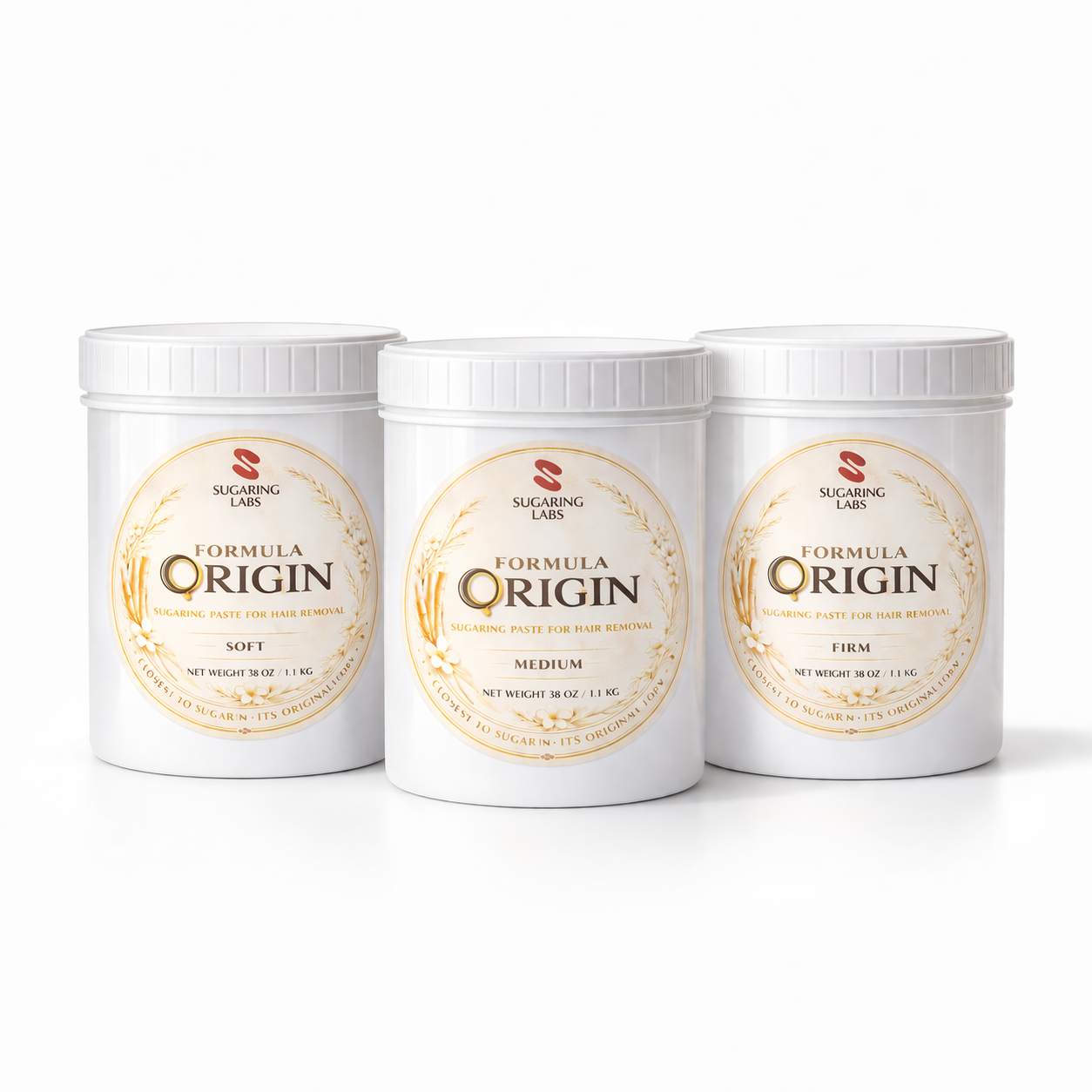 Origin Trio is a complete professional organic sugaring paste set featuring all three essential consistencies: Soft, Medium, and Firm for full salon flexibility and efficient hair removal services. This premium vegan sugar paste collection is made with natural ingredients including organic sugar, lemon juice, purified water, and Aloe Vera Juice.